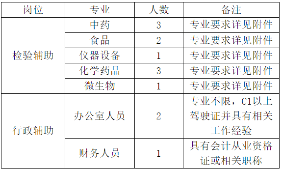 根據(jù)工作需要,大同市食品藥品檢驗(yàn)檢測(cè)中心委托大同市勵(lì)瑞勞務(wù)派遣有限公司招聘檢驗(yàn)輔助人員10名,行政輔助人員3名,用工形式為勞務(wù)派遣,現(xiàn)將有關(guān)事項(xiàng)公告如下: